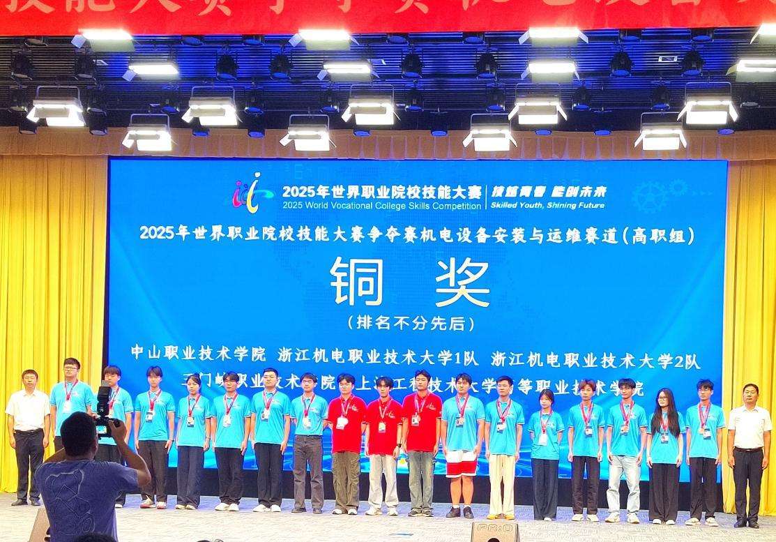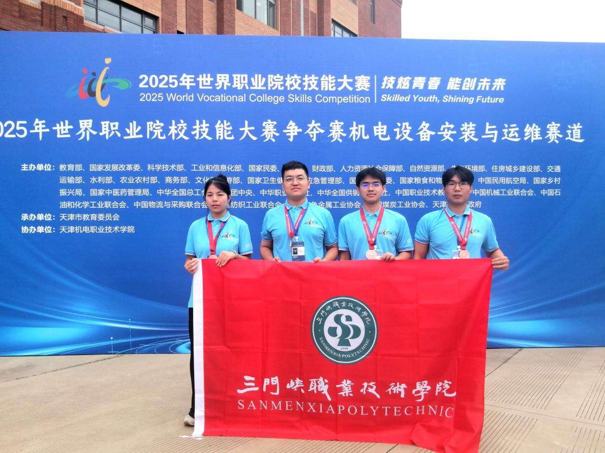 9月18日-22日,2025年世界职业院校技能大赛总决赛争夺赛“机电设备安装与运维”赛道在天津机电职业技术学院落下帷幕。由tyc522cc太阳成集团尤向阳和汽车学院雷楠楠主要指导,2023 级电气自动化技术专业李帅兵、于江坡、杜昊坤和2024级风力发电工程技术专业孙一四位同学组建的“智能光伏并网控制系统安装与运维”参赛团队与来自全国83所高职院校的90支代表队同台竞技,表现卓越,喜获铜奖,实现公司在世界职业院校技能大赛工科赛项的历史性突破。