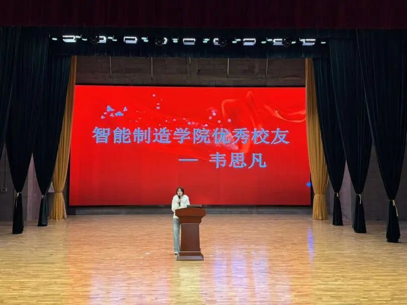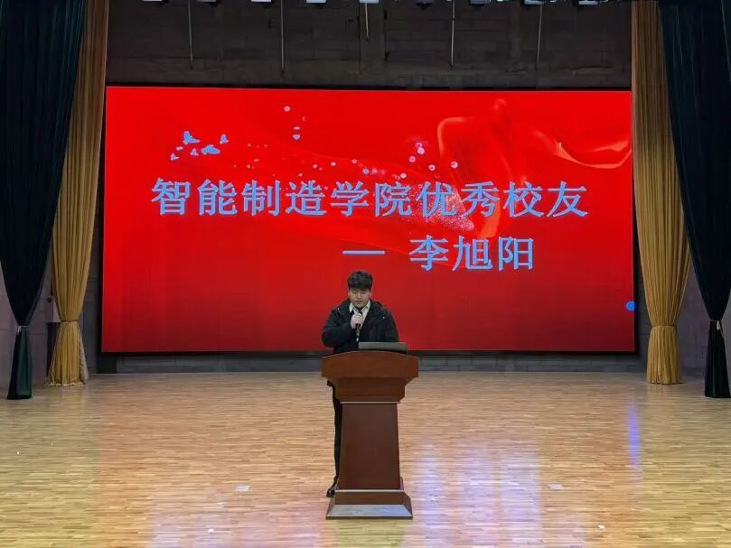 随后,2020级供用电技术一班李旭阳分享其在宝武铝业的成长经历,体现 “专业筑基、实践赋能”。他提到宝武铝业是中国宝武新材料核心项目,自己在校时曾任团支书获 “优秀团干部”,参与赛事获奖,还带团队研发装置获 2022 年 “挑战杯” 河南铜奖;入职后从车间轧制工起步,2024 年 1 月升行政岗、9月任热轧厂团支书,后赴苏州宝武领导力中心培训结业。他提四点建议:试错找方向,校园实践是职场底气;专业落地,学习关联应用与生产;主动链接,多问课题、组队项目;保持耐心,证书竞赛靠积累,努力成竞争力。