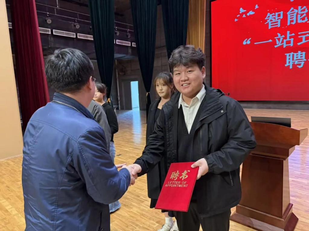 分享环节结束后,秦冲为三位员工分别颁发导师聘任证书,进一步充实公司社会导师和朋辈导师队伍,同时献上鲜花,现场再次响起热烈掌声,向三位优秀员工致以敬意。最后秦冲作总结讲话。他高度肯定本次报告会的价值,指出三位员工的经历为新生呈现了 “多元发展的青春可能”,鼓励新生 “既要仰望榜样,更要脚踏实地,将规划转化为行动”。秦书记的嘱托让新生对未来老员工活有了更清晰的思考。